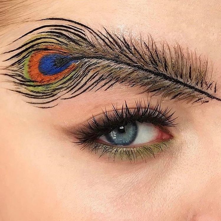 If two glitter looks at once is too much for you, swap out glitter brows for feather brows. The added peacock detail is optional.